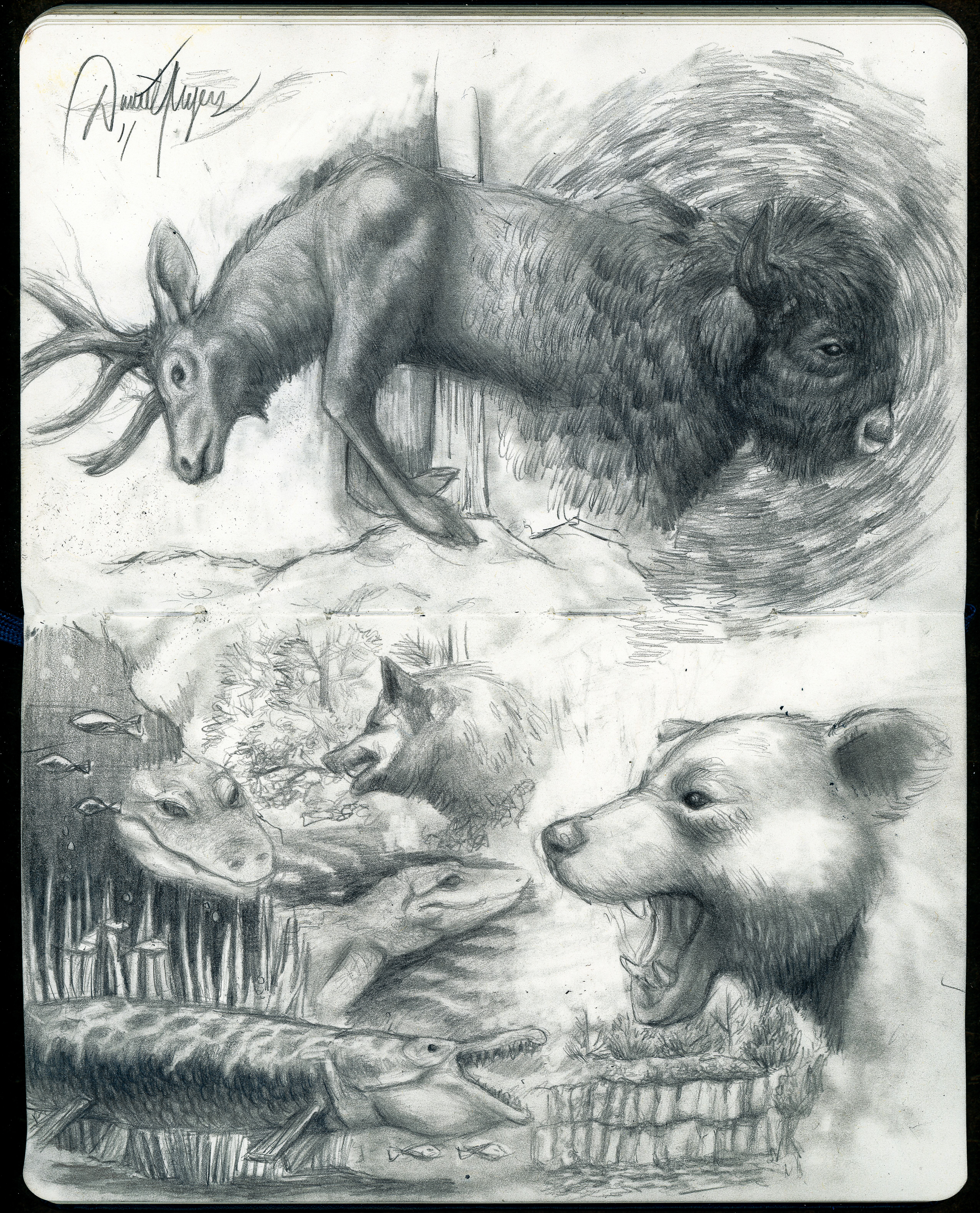 Some drawings of the taxidermied animals at the Bass Pro in Springhill.
